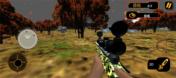 游戏中玩家需要注意的是游戏的每一个关卡的有一个倒计时,当时间结束还没有完成任务,游戏通关就失败了,所以玩家在进行游戏的时候也不能拖,必须要速战速决。还在等什么,有兴趣的玩家快来下载荒野狩猎达人游戏进行游玩吧!