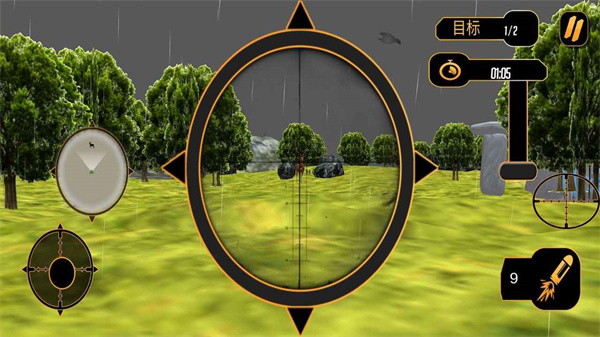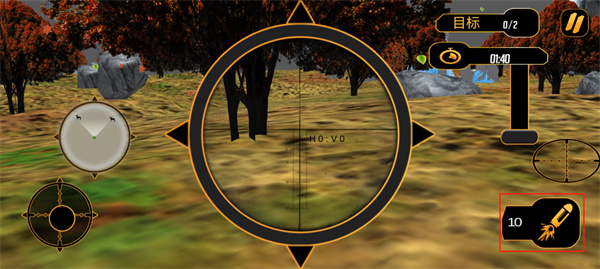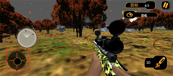 荒野狩猎达人游戏操作也十分的简单,玩家需要通过左下角的摇杆来进行移动,游戏左边还有一个小地图,玩家可以查看到猎物的所在位置,玩家可以通过小地图来缓慢的靠近你的猎物给予它致命的一枪。