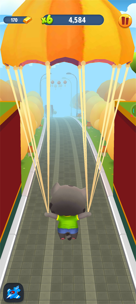 飞机这个道具是跑酷当中人气非常高的道具之一了。只要玩家捡到了这个道具,就可以驾驶飞机在天空中翱翔一段时间。天空中不像地面上有那么多的障碍物,同时在飞行路线上也会存在着大量的金币,只要操作的好的话,利用这段时间,就可以让你赚个大丰收。