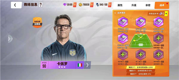 1、让我们来看看主教练卡佩罗是你的最佳选择吗?可选择实用主义的特殊套路,或者快速反击、突破防线的强化套路,还可解锁穿越防线战术。