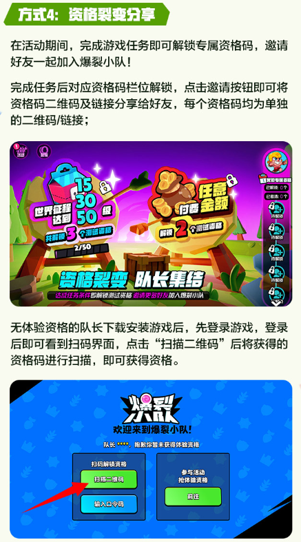 在活动期间,完成游戏任务即可解锁专属资格码,邀请好友一起加入爆裂小队!