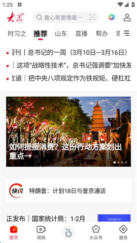 大众新闻app是由大众日报融合大众报业集团等资源打造的一款新闻资讯客户端,软件开设帮办、文化、党建、金融、健康等频道,为山东以及全国人民提供实时、准确的新闻资讯。软件立足于当下形势,向广大用户权威报道并解读分析各政策以及新闻,还能对当前一些不实说法做好辟谣,引导大众。