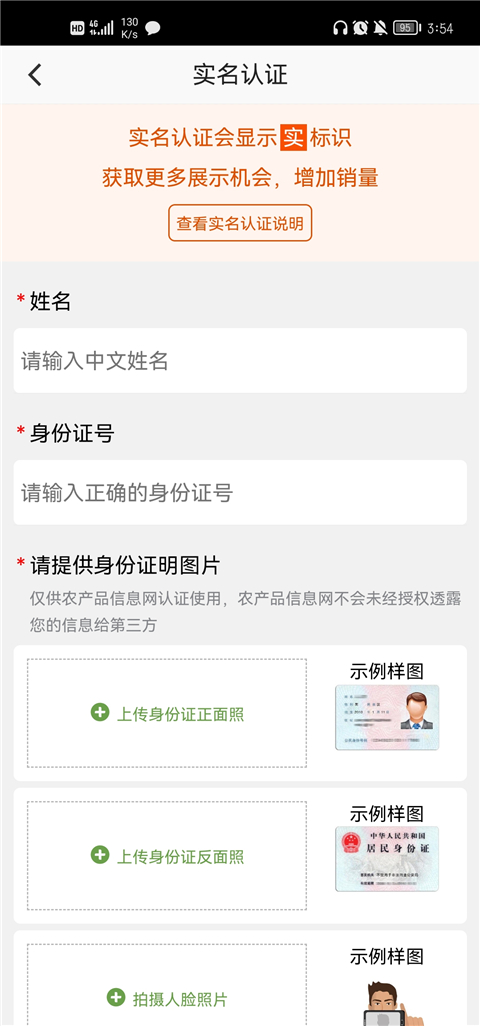4、用户进入我的需要进行实名认证,上传各种信息即可。