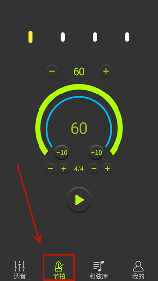 4、节拍界面可以自定义想要演奏的曲目的节拍,点击播放按钮即可。