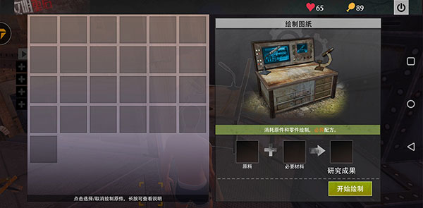 它和研发台有相辅相成的作用,我们用研发台解锁了不同等级的物品装备,这时候就需要绘制台来制作学习研究配方(这里小编来和大家简略介绍一下它是怎么来消耗绘制的。假如我们在路边敲到一件骨甲衣服,我们拿去绘制台去学习绘制就要消耗一件它这样原有的装备才得以制作出配方)。