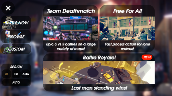 帮助您的团队在经典的Team Deathmatch中占据主导地位,或者在Free For All中独自进行!请继续关注即将推出的Battle Royale模式。