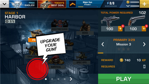 1、超级准确的控制2、9 个具有升级选项的强大武器