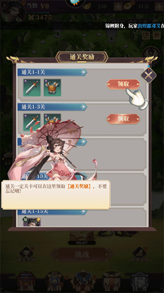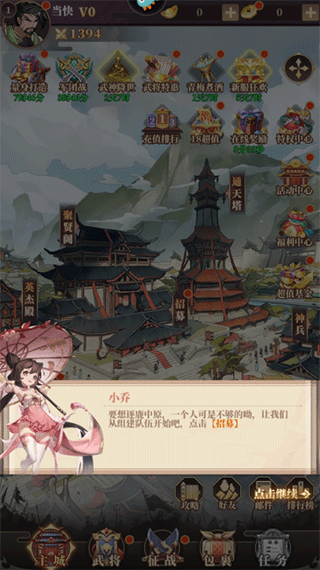 游戏特色包括离线挂机收益多、100连抽上线送、阵容百搭组合多等,玩家可以通过招募、征战、挑战等方式获得奖励和提升实力。此外,游戏还新增了许多玩法,比如全新无双武将“古之恶来”典韦的登场、魂石装备养成、荣耀战场等,极大丰富了游戏内容。
