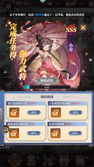 2、需要完成32个任务才可解锁小乔,可看到上方蓝色的进度条,进度条满即可成功解锁小乔