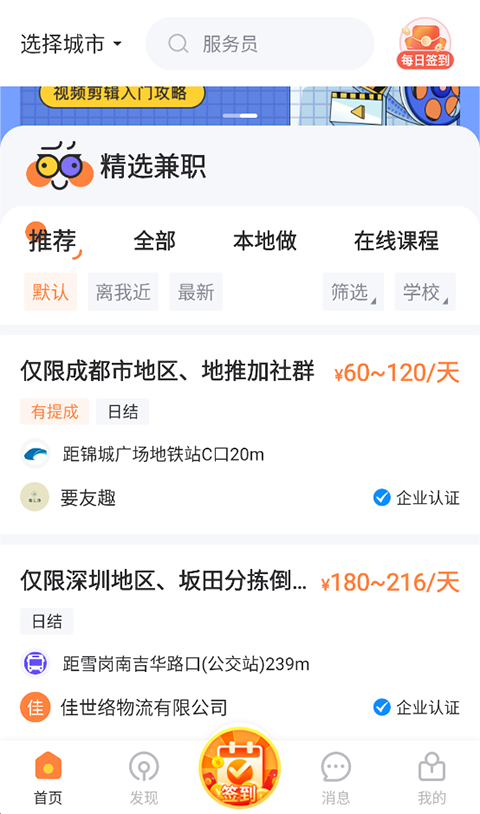 每日精选岗位、智能匹配同城兼职,帮助求职者快速找到满意的兼职岗位。