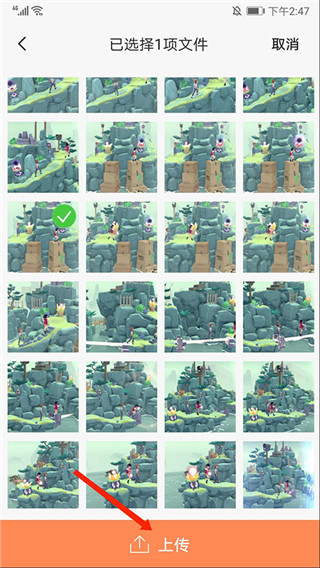 7、如图,勾选需要的图片,点击下方【上传】选项;