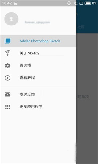 Photoshop Sketch的主界面很简单,从左侧边缘向右滑动可以呼出功能菜单,在菜单中可以查看教程以及进行一些设置,并没有什么需要特别注意的地方。点击主界面的“+”按钮,就可以创建项目,开始画画了!Photoshop Sketch在你首次使用的时候会有一些教程,无需担心无从上手。