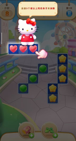 2、游戏中凯蒂和她的小伙伴们将带玩家领略世界各地风光,体验有策略又爽快的消除;