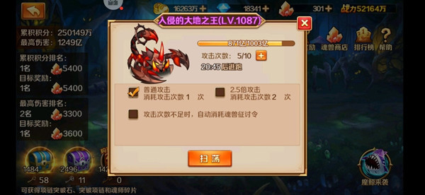 5、和魔鲸入侵类似,普通的魂兽入侵也以获取钻石,即击杀为主。