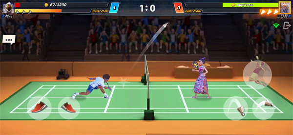 3、轻轻点击屏幕即可让主角将球拍过球网,规则与现实生活中的羽毛球赛事一样;