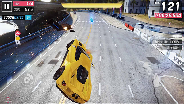 全新TOUCH DRIVE操作将帮你简化转向操作,让你专注于竞速的快感!但你也可以切换到手动控制(重力感应或点击转向),成为更专业的《狂野飙车》赛车手!