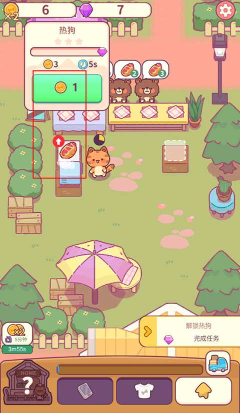 玩家还可以进行店铺的升级点击右下角的房屋图标,使用金币进行升级,可以雇佣店员、提高收益等等。