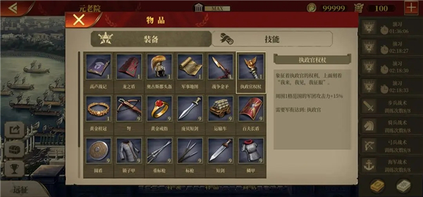 2、军事地图:很强且超值的装备前期可看情况购买装备于腿短将领如斯巴达克斯维钦托利等