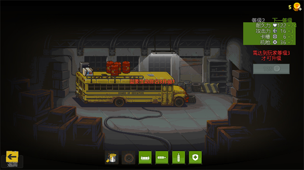卡车的升级只需要金币,但是士兵的升级更为复杂一些,血量、攻击力和幸运值的升级需要各自获得相应的补给才能升级。