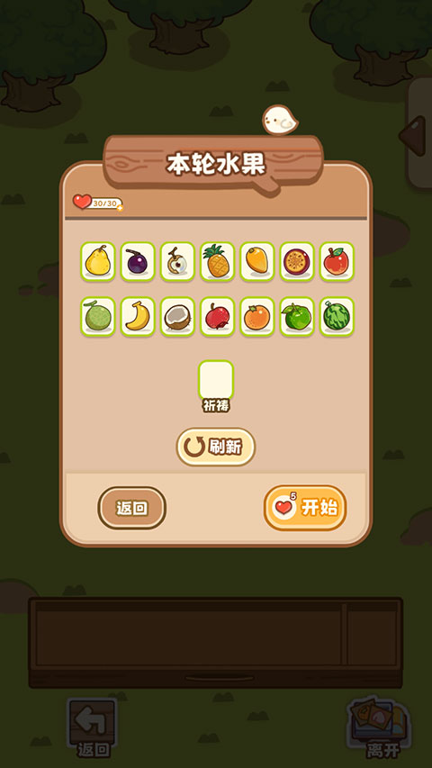 7、全部消除完毕即可获得全部的水果,我们也可以点击右下角的【离开】按钮随时结束收集小游戏。