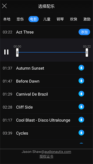 3、在当前页面最下方选择【音频】--【音乐】,然后根据自己的需求选择配乐,支持本地音乐选择;
