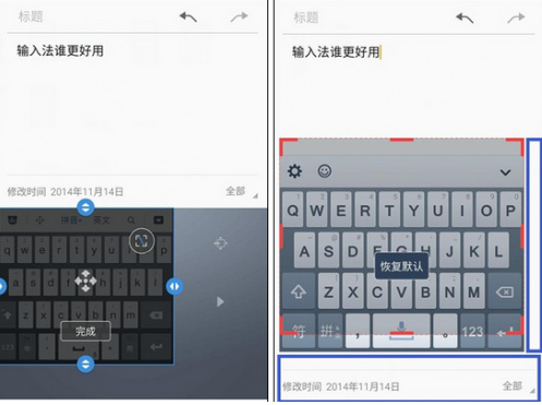 图:QQ输入法的浮动键盘PK百度输入法的大屏单手输入功能