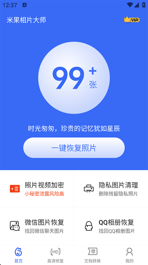 米果相片大师App是一款安全、专业的手机相册管理应用,它提供照片和视频恢复、隐私图片清理、照片修复等功能,用户可在App内恢复之前删除的照片,包括微信、QQ的图片,一键快速找回!米果相片大师App还支持多类型文件修复,它可以对老照片进行上色、还原模糊人脸等操作,还可以将合同、聊天内的模糊文字进行修复还原!此外,米果相片大师更内置了隐私保险箱,用户可以将证件照、聊天截图、合同等文件存放至保险箱中,防止私密信息被查看。
