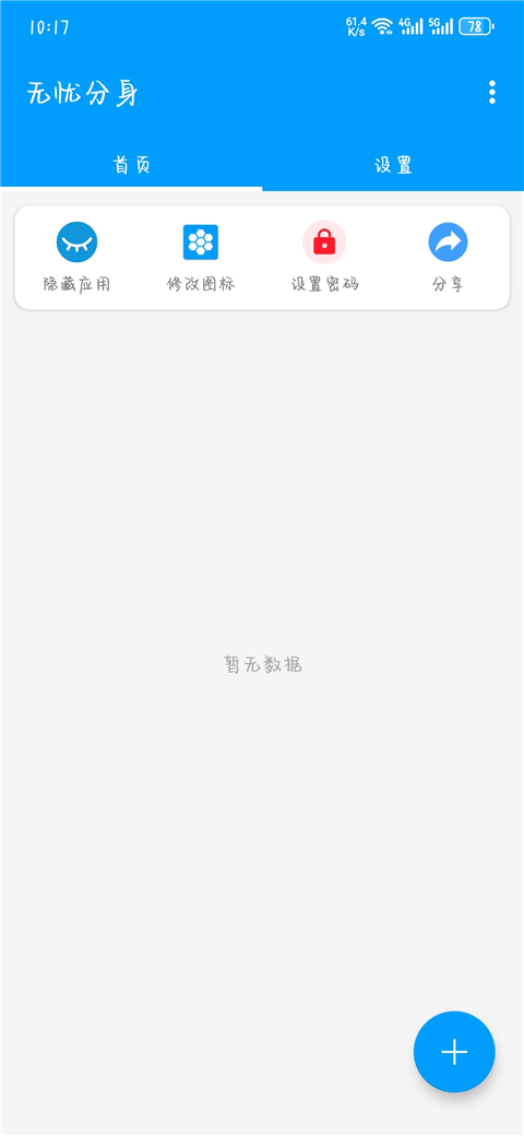 无忧分身APP还支持隐藏应用、修改图标、应用密码、分享实用功能,用户可以个性化更换软件图标,隐藏私密软件、为应用加上密码,这样防止别人查看你的软件内容,保护个人隐私!