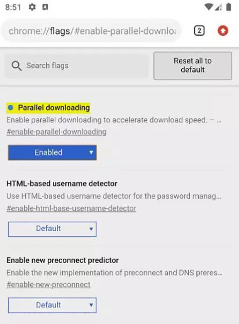 除了使用第三方下载器之外,我们同样可以通过在 Chrome flags 上搜索「enable-parallel-downloads」来开启 Chrome 的并行下载功能,开启时候下载大文件时速度会更快,并且更不容易出现错误。