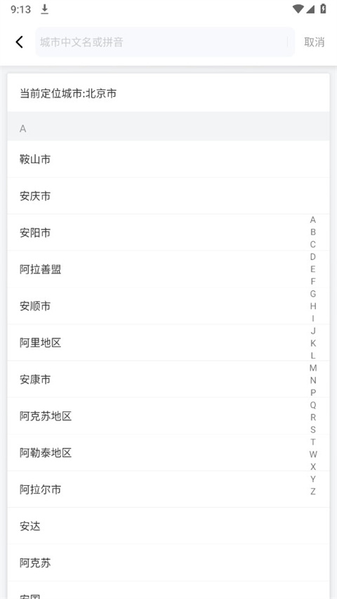 2、然后输入你的城市或通过选择来进行切换;