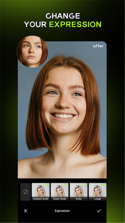 - AI修图:一键体验AI的魔力,改变发型,尝试新的发色,通过调整笑容让照片更加生动。