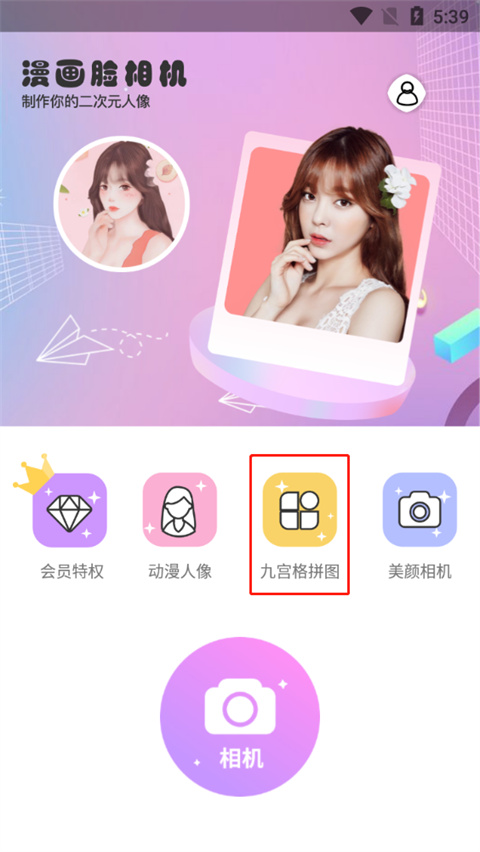 1、打开动漫脸相机软件,点击九宫格拼图;