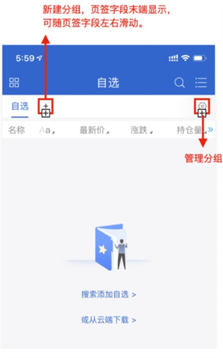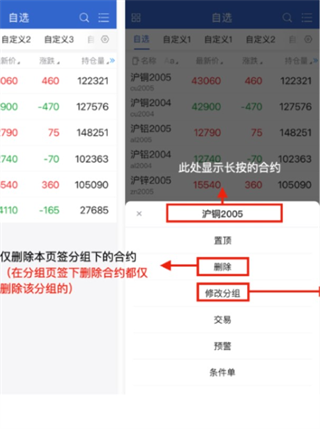 1、在合约详情页、搜索与行情列表里加删自选时,若没有自定义分组,则直接从默认自选加删;