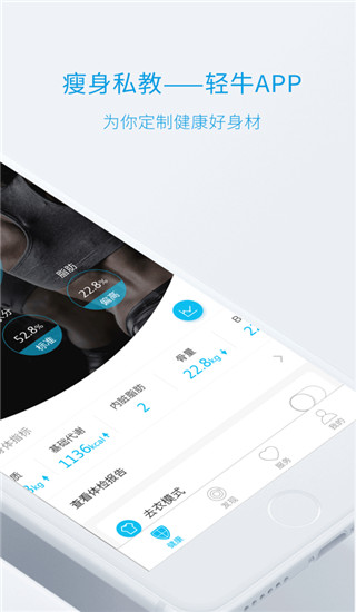 轻牛app是一款非常好的健康管理平台。不同于传统的健康类应用,轻牛可以接入云康宝等多种健康测量设备,获取您的健康数据,然后基于智能云端进行数据分析和追踪,向您提供完善的身体成分图表和健康分析报告。除此之外,轻牛可以接入云康宝等多种健康测量设备,获取您的健康数据,并基于智能云端进行数据分析和追踪,提供完善的身体成分图表和健康分析报告,并为您量身定制健康方案。同时支持家庭全员共同使用,让您随时随地了解家人的健康状态。如果喜欢可以下载使用!!!