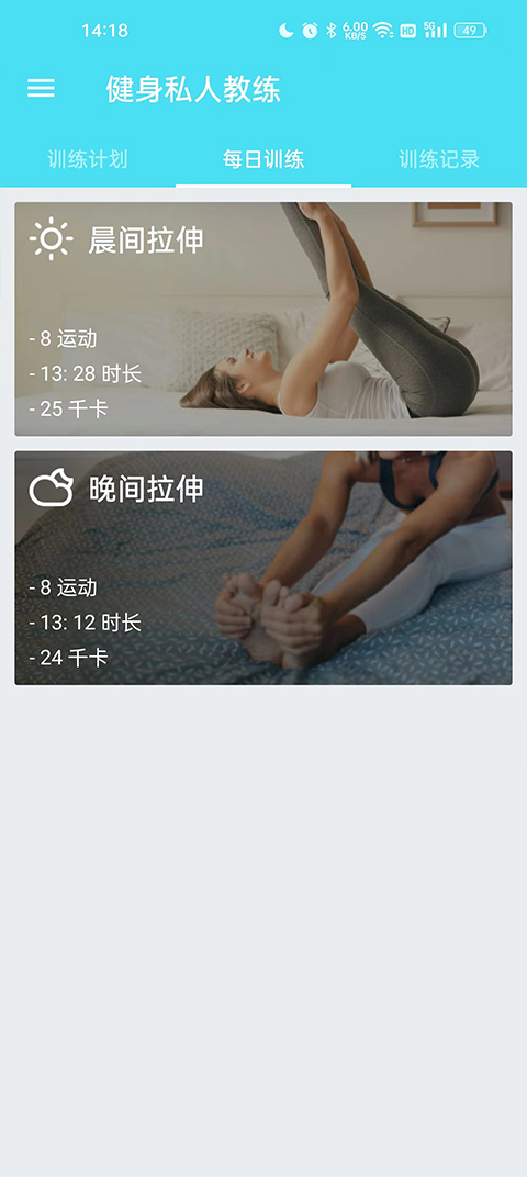 7、热身和拉伸动作的设计来确保你科学的健身。动画和视频指导,可以帮助你把每个动作都做对。