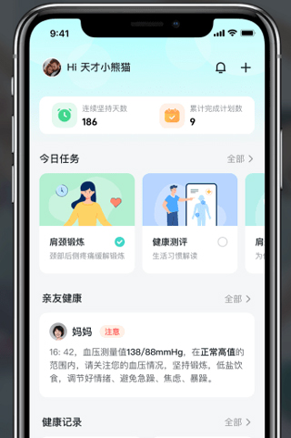 添加亲友后,可查看亲友健康数据,还可向已添加亲友发送关爱消息提醒,及查看已添加亲友发送给自己的关爱消息提醒,通过分享查看彼此健康数据,实现远程关怀。