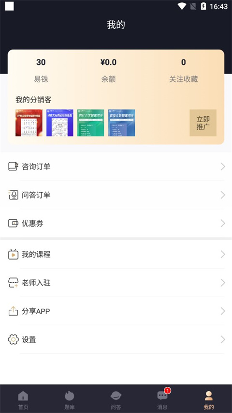 1、在本站点击下载易百查app进入首页,在这里可以选择学习课程,复习每日一练;