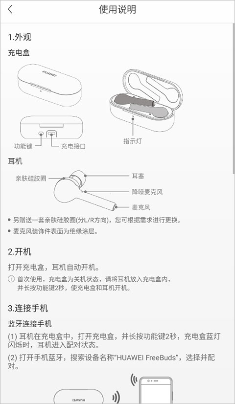 而且,完全不用担心操作问题,FreeBuds助手为大家准备了详细的使用教程,从耳机的外观再到充电等等,都有详细的图文教程,第一次使用的朋友也可以快速上手,这一点还是比较的贴心。软件还可以准确获取说话时机主的骨声纹信息,再加上手机语音助手功能,带上耳机语音助手便在耳边时刻待命,给大家带来更好的使用体验,有需要的朋友欢迎下载体验哦。