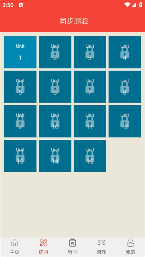 6、用户在学习过程中还可以根据相对应的教材单元进行同步测验,检验自己的学习成果。