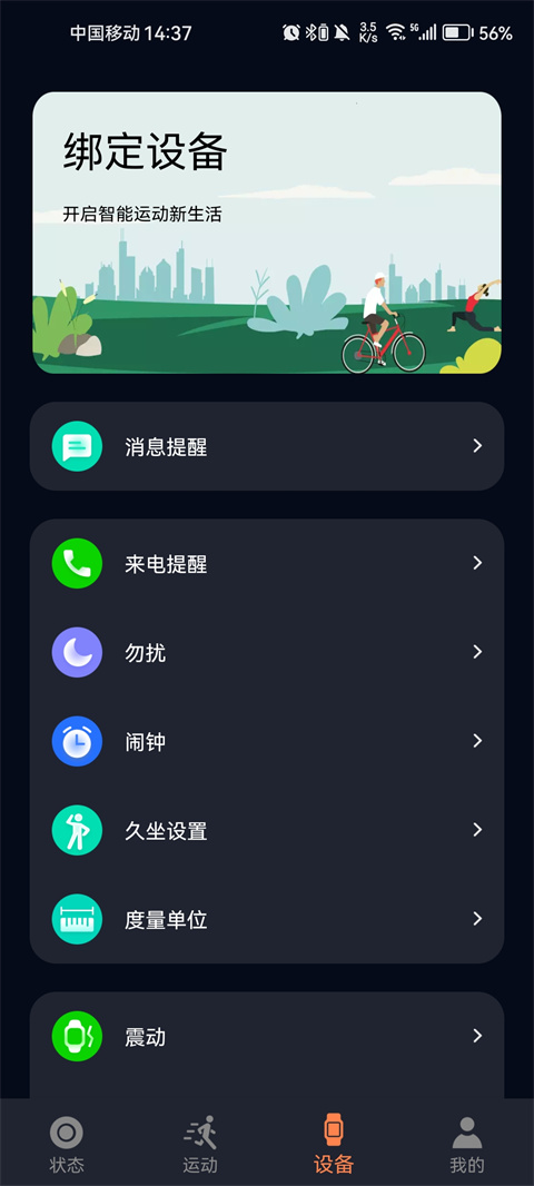 绑定手机设备之后,手机有新的短信或者来电时候,手表也会提醒;