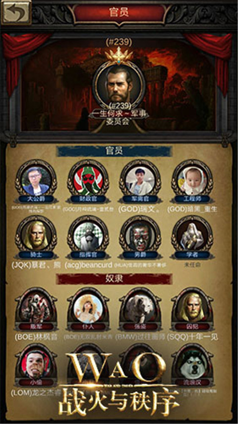 战火与秩序的王战已经开启了一段时间,王战过后,获胜盟盟主可以任命国王。国王可以任命王国内的16个官职,官职可以说是游戏中非常有特色的玩法。官职的最底层是囚犯、叛军、仆人等,这些官职不仅仅是一个职位,还有属性加成哦。不同的官职对应着不同的属性加成,等级越高的官职获得的属性也就越多。下面我们来一起看看各类官职的具体属性加成吧!