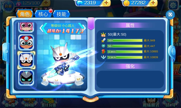 开心超人机甲联盟最新版是一款动画题材动作闯关手游,由同名漫画《开心超人》正版授权改编而来。游戏采用了卡通式的精美画面风格,其中玩家将扮演超人来进行冒险,通过普通攻击和技能攻击来战斗,当敌人多了以后就会觉得攻击力有点相形见绌,这时候就可以进入系统中对自己的角色进行强化升级来提升战斗力。游戏完美复刻的开心超人英雄角色,超人包含了开心超人,甜心超人,花心超人,粗心超人,小心超人等等,不同的角色有不同的实力,你可以根据需求进行选择。