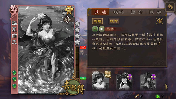 2级,出牌阶段限一次,你可以将一张基本牌当作“刺杀”使用,或将一张非基本牌当作“无中生有”使用;
