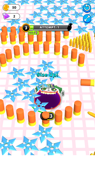 7、积攒的金币可用于升级,比如升级黑洞的移速,大小等,还可以在商店购买各种不同的皮肤及技能