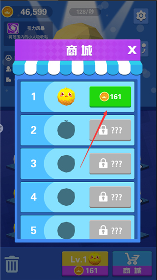 3、点击移动球球获得升级的球球,可以帮助你获得更多的金币;