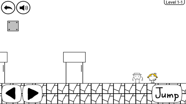 游戏一开场,便能看见一个2B青年哼着不着调的小曲,一蹦一跳的走在路上,也不知道他在穷开心神马,难道真的是2B青年欢乐多?走着走着面前突然出现了一个牌子,改不了好奇的臭毛病,2B青年决定上前一探究竟,原来是碧奇公主写的求救牌,只要闯过程序员设计的种种陷阱,解救公主不仅有重赏还能抱得美人归,这种两全其美,屌丝逆袭白富美的事,2B青年怎能错过?正所谓好奇害死猫,大家就等着看他怎么被虐死吧;