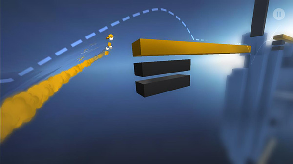 2、用右拇指点击屏幕控制角色跳跃过黑色障碍。