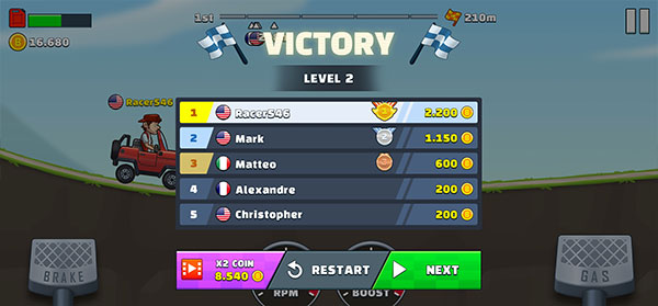 7、成功抵达终点即可获得胜利,获得的名次也高奖励也越高;