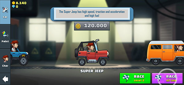 登山越野竞速最新版(Climb Offroad Racing)是一款具有卡通风格的登山赛车类游戏,游戏拥有精美画面完美再现现实场景,给玩家身临其境般的完美越狱激情。各种造型的大论越野车炫酷多彩,随你挑选,在威猛、彪悍的四驱越野车助力下,玩家可以轻松享受到各种场景与路况下的越野体验。在游戏中你将扮演一个有抱负的年轻上坡赛车手杰克,踏上一段奇妙的旅程,从山到山,从城市到城市,甚至到月球,丝毫不在乎物理定律!游戏的操作也是简单易懂,玩家完全可以用单手完成,游戏中的越野车无法进行左右移动,只需通过点击屏幕前进即可。看似简单的操作也蕴含着一定的小技巧在里面,在越野车前进的过程中,如果速度过快且坡度较大就有可能受到翻车的威胁,这时就需要玩家松开手指降低速度,来确保车辆的平衡性。