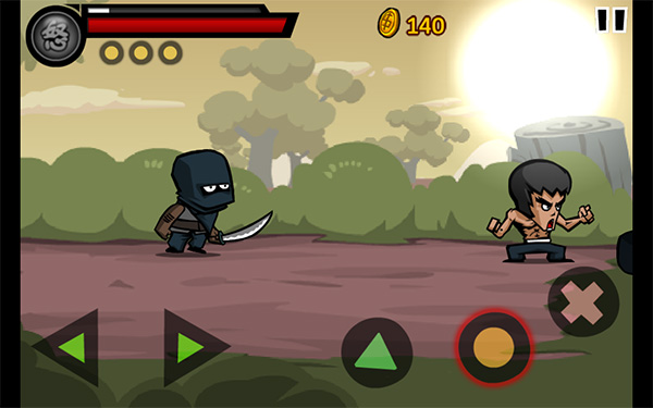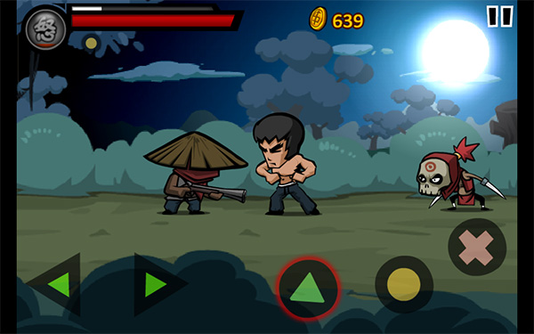 功夫战士中文版是一款非常好玩且极具特色的横版格斗类闯关手游。游戏以李小龙为原型打造,玩家所扮演的就是一个类似于李小龙这样的功夫高手,主角身姿硬朗,肌肉发达!游戏的故事开始是在一个小小宁静的村庄,在这里,主角是在老师那里学习古老的功夫,通过自己的努力,获得了一定的武术知识,并学会了高深的功夫。突然有一天,在没有防备的情况下,一野猪男带着小弟们来洗劫了村庄,杀死了师傅,主角决心为师傅报仇,因此,一段热血传奇的英雄格斗正式上演!